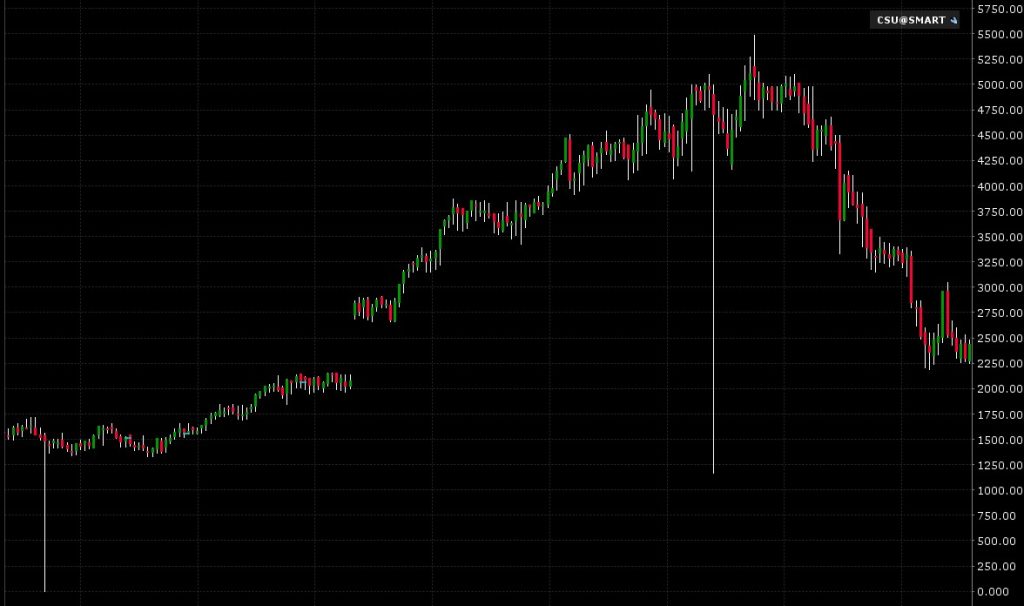Here is the stock price chart but it has a couple of bad data points so just ignore those.