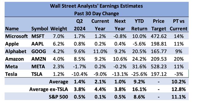 Now that every US Big Tech company except NVidia has reported earnings I thought I would take a look and see how it has affected analyst earnings estimates for the coming quarters