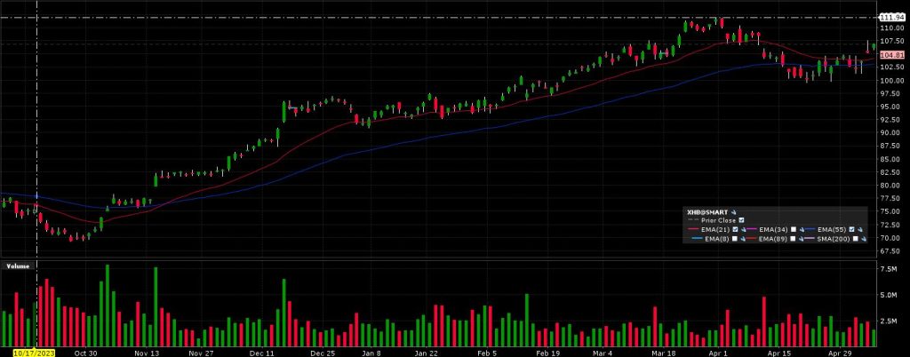 This probably explains why the homebuilders have been so strong. This is the Homebuilders ETF. XHB.