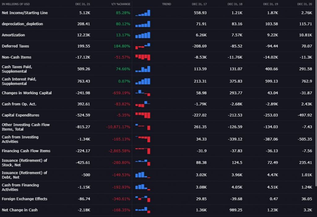 I want to draw your attention to the Cash from Operating Activities Line which, for each year since 2017 has been