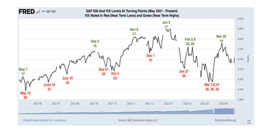 We noticed a pattern occurring in the S&P500 around significant short-term highs and lows and what the VIX index was at that time.