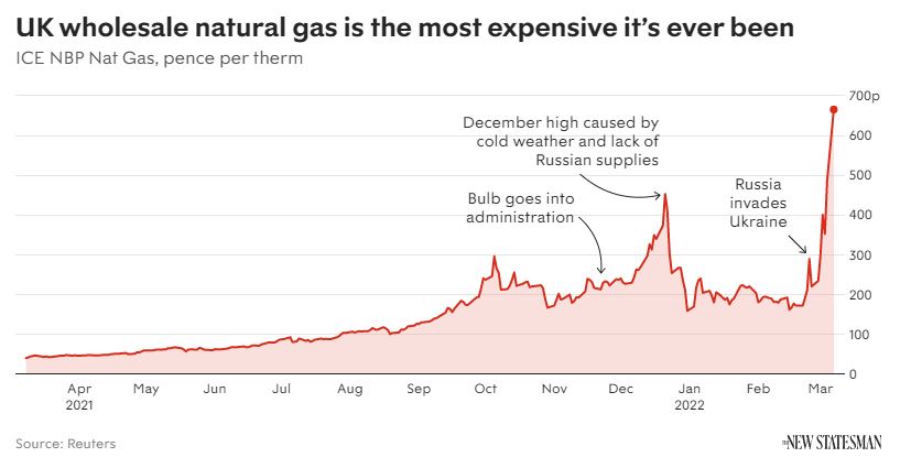 Natural gas prices in the UK have hit an all-time high due to Russian disruptions.